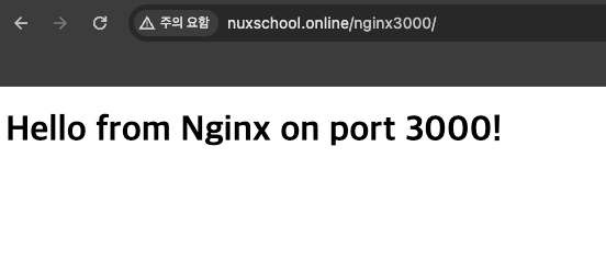 /nginx3000 경로는 3000포트를 이용한 nginx 컨테이너로 정상적으로 접속하는 모습을 확인할 수 있다.