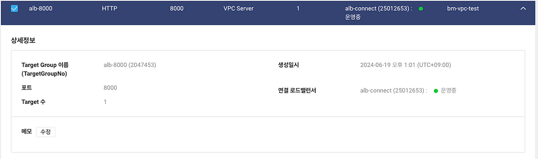 타겟그룹을 각각 생성하였으면 우선 ALB에 8000포트 타겟그룹만 매핑해주겠다.. (ALB와 타겟그룹을 생성하는 자세한 장면은 생략하도록 하겠다.
