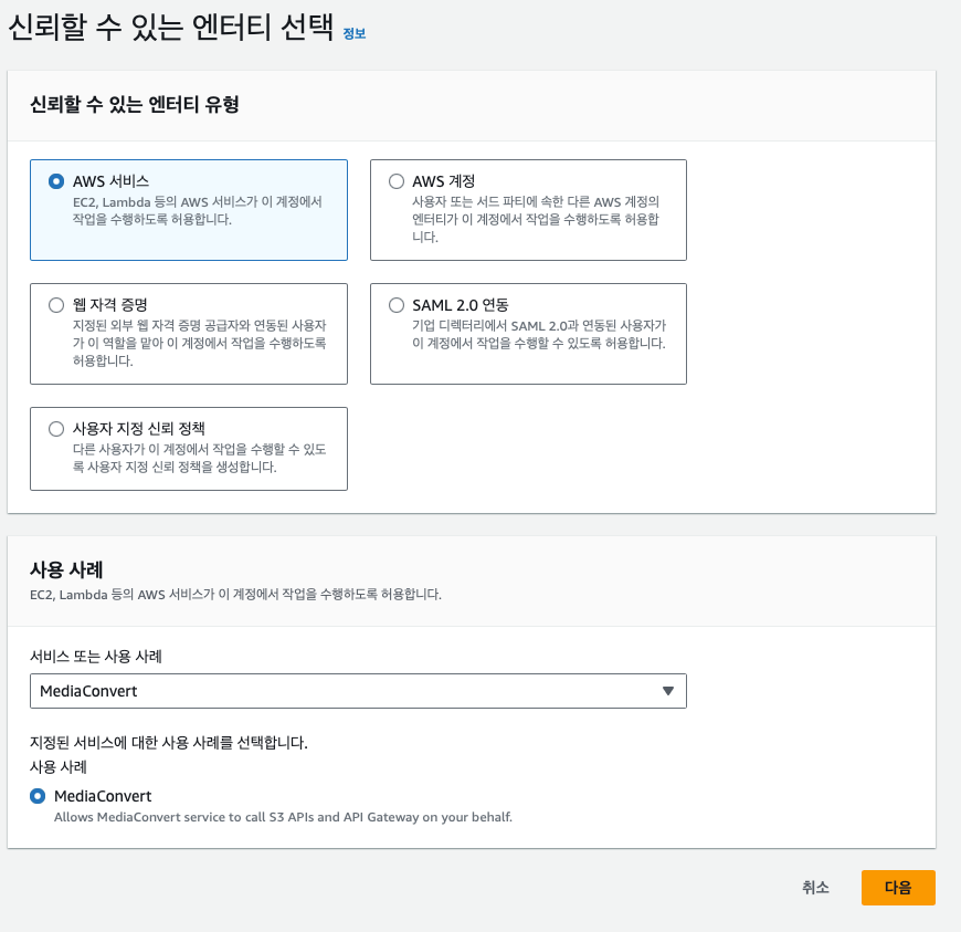 이름을 MediaConverRole로 지정해주고 생성해주겠다.