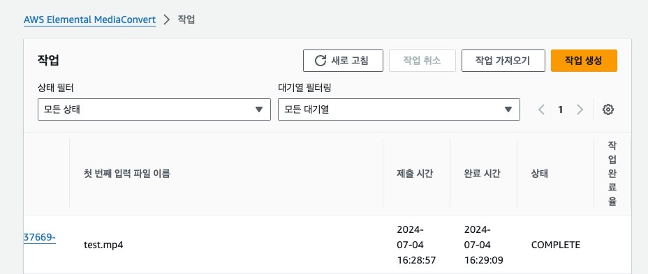 버킷의 output 경로를 확인하니 정상적으로 변환된 모습을 확인 할 수 있었다.