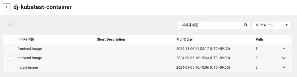 dj-kubetest-container.kr.ncr.ntruss.com/frontend-image latest e388be37cf5c 5 days ago 253MB