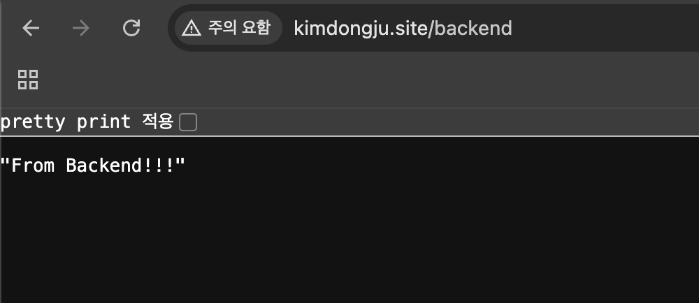애플리케이션이 외부에서 정상적으로 접속되고 있는 것을 확인할 수 있다.