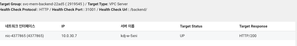 백엔드의 Pod에 livenessProbe 경로를 /backend/로 지정하였기 때문에, ALB에서 생성된 백엔드 Target Group의 헬스 체크 경로 또한 동일하게 /backend/로 설정해야 정상적으로 통신이 이루어진다.