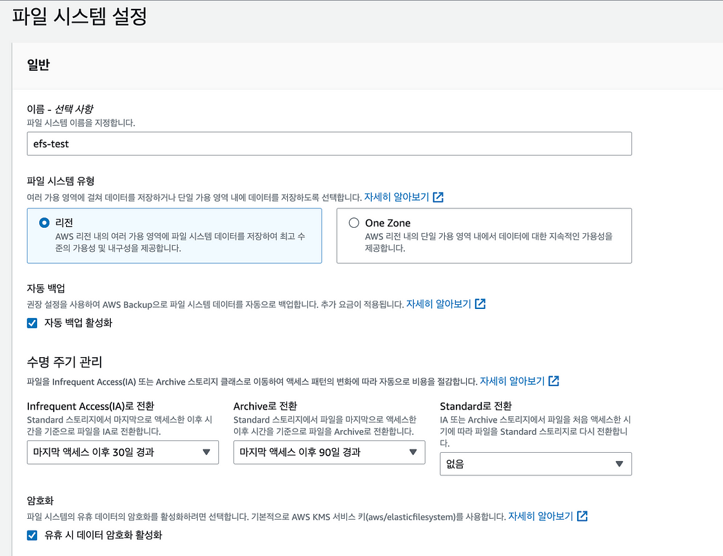 EFS 생성 및 설정