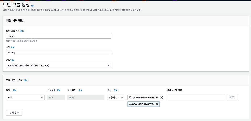EFS 전용 보안그룹 생성
