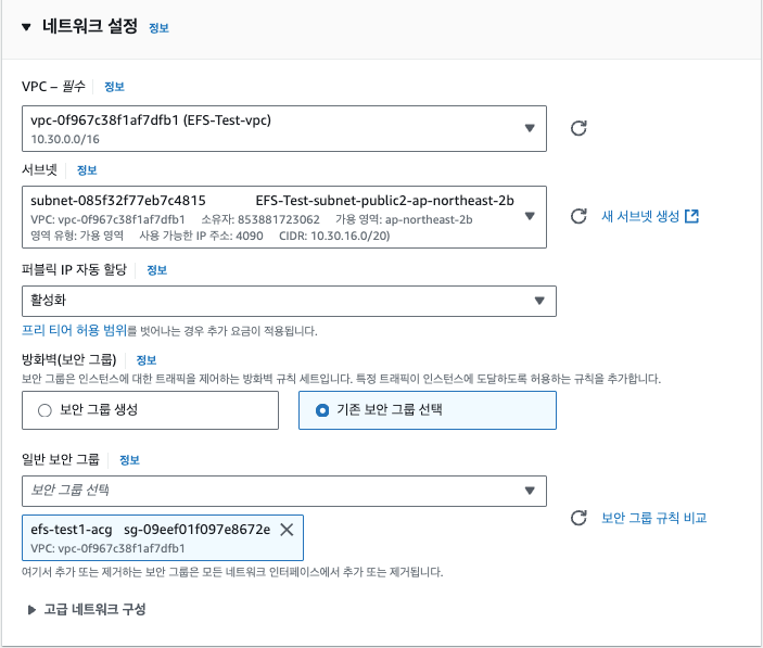 EC2 생성시 EFS 연결