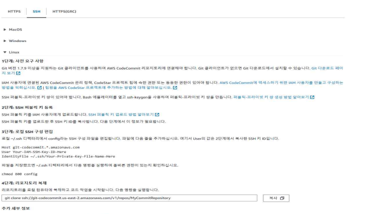 - 개발자가 CodeCommit에 소스 코드를 Git push한다.