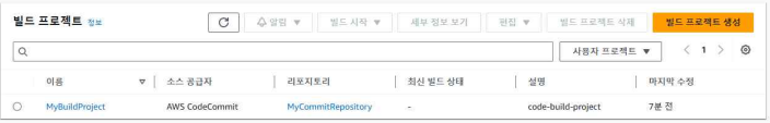 → 첫 단계인 Source 단계에서 CodeCommit의 변경 사항을 감지한다. - CodeBuild가 실행되어 Docker 이미지를 빌드한다.