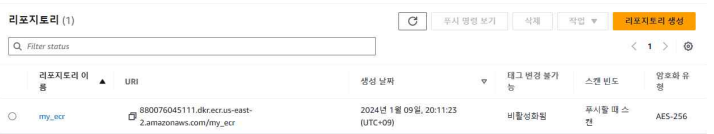 - build: Docker 이미지를 service:1 이름으로 빌드하고, ECR 리포지토리에 latest 태그로 태깅한다.