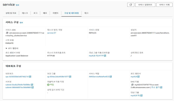 - Service: 원하는 개수의 Task가 항상 실행되도록 유지하며, Auto Scaling, Load Balancing 등의 기능도 함께 제공한다