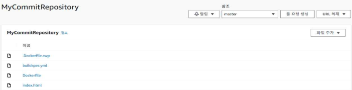 다음과 같이 CodeCommit 저장소에 파일이 정상적으로 업로드된 것을 확인할 수 있다.